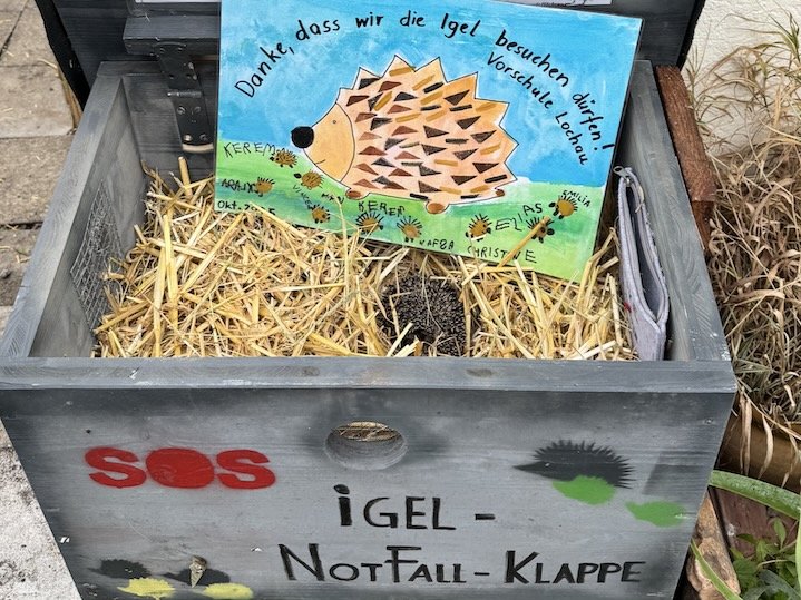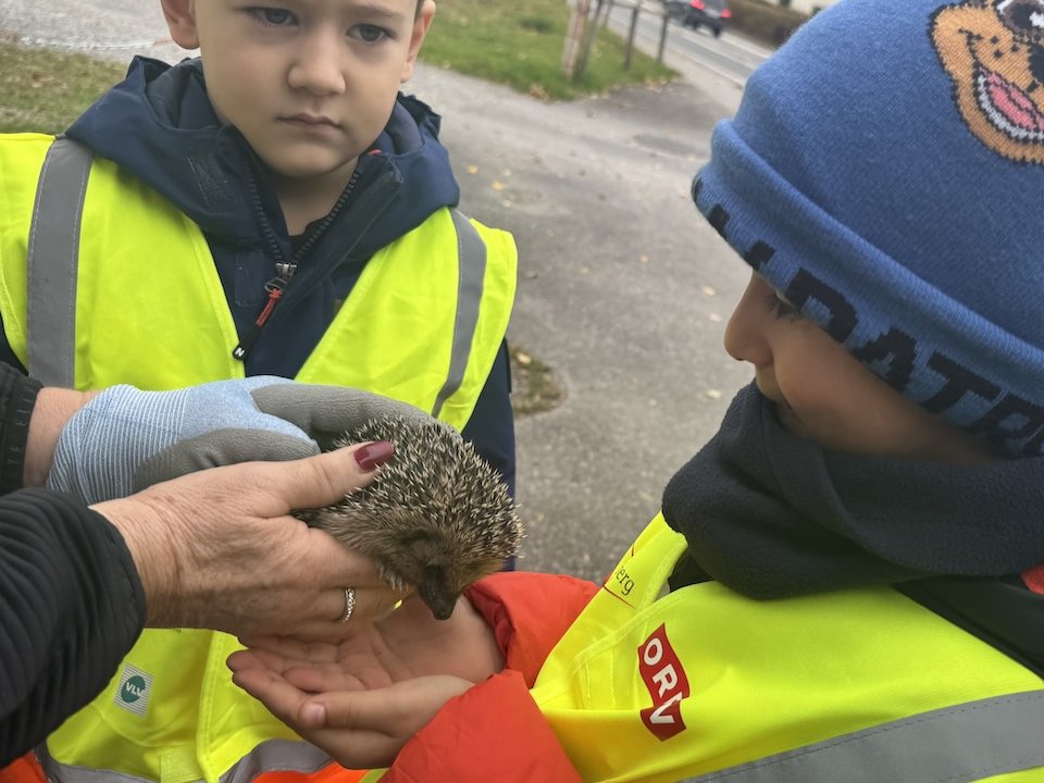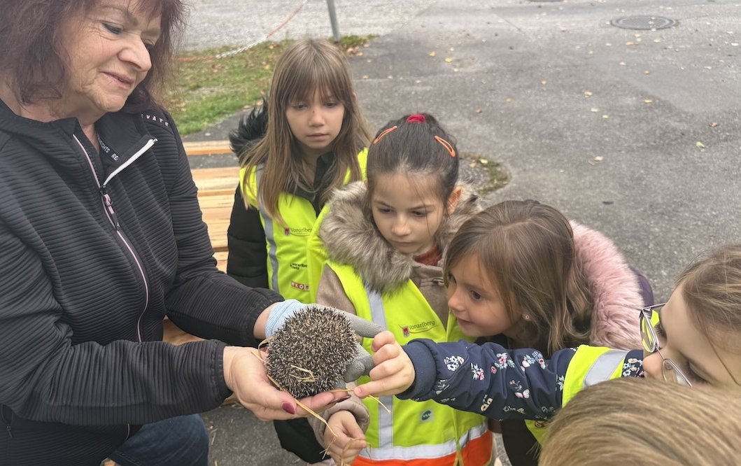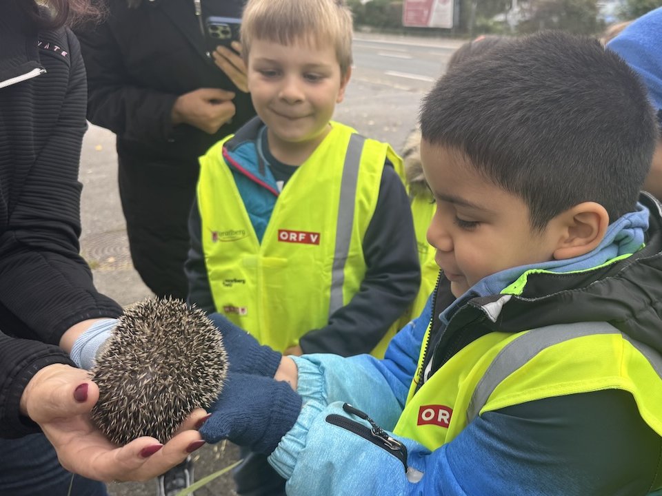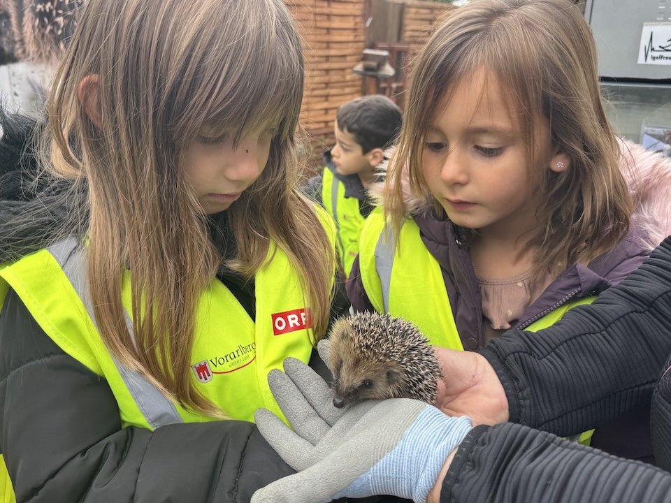 Am 10. Oktober durfte unsere Vorschulklasse die Igelfreunde Leiblachtal in ihrem neuen Zuhause in Lochau besuchen. Frau Adele Dornig kümmert sich dort mit viel Herz um verletzte oder schwache Igel und bereitet sie auf den Winter vor. In der neuen Igelstation in der Lochauerstraße 17 gibt es sogar eine Notfallklappe, in der jederzeit hilfsbedürftige Tiere abgegeben werden können.
